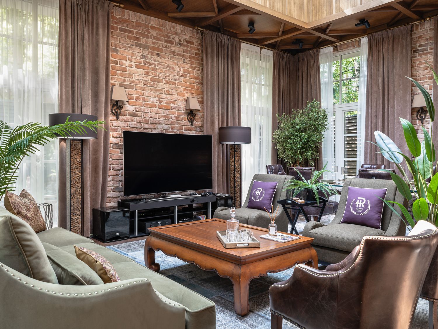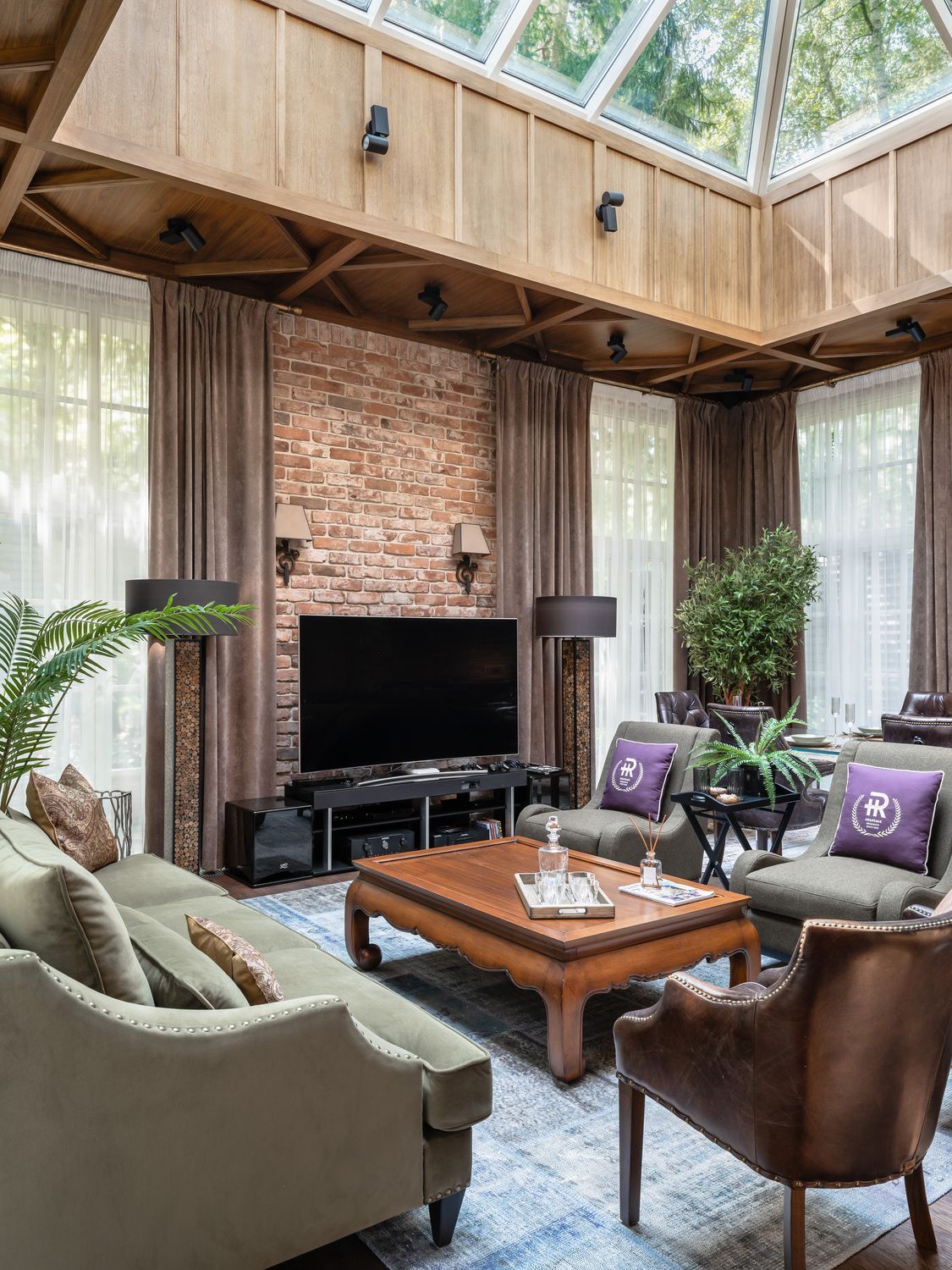 Дизайнеру удалось приручить внушительный объем помещений, наполнив их благородными фактурами дерева, камня и света, создавая среду, которая выглядит дорого, но при этом остается максимально комфортной. Сердцем парадной гостиной стал диван Marrakech, чей масштаб и мягкие формы идеально соответствуют высоте потолков и общему размаху резиденции. Эта модель была выбрана за её способность организовывать пространство, создавая уютный «остров» для отдыха в центре большого зала. Диван Marrakech в исполнении Олеси Зайцевой подчеркивает статус владельцев, обеспечивая мягкий визуальный переход от строгой архитектуры стен к зонам тактильного комфорта.
