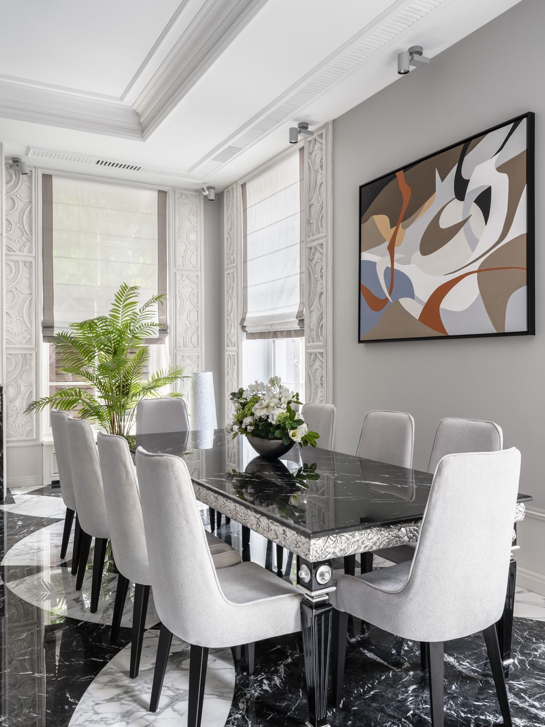 Обеденная зона резиденции спроектирована для торжественных приемов и теплых семейных встреч, где ключевым элементом стали стулья Trend. Их лаконичный дизайн и выверенная эргономика позволяют им органично смотреться в окружении массивной мебели из натурального массива. Олеся Зайцева выбрала модель Trend за её способность поддерживать атмосферу «Quiet Luxury»: эти стулья не доминируют в пространстве, но обеспечивают бескомпромиссный уровень комфорта, соответствующий уровню проекта.