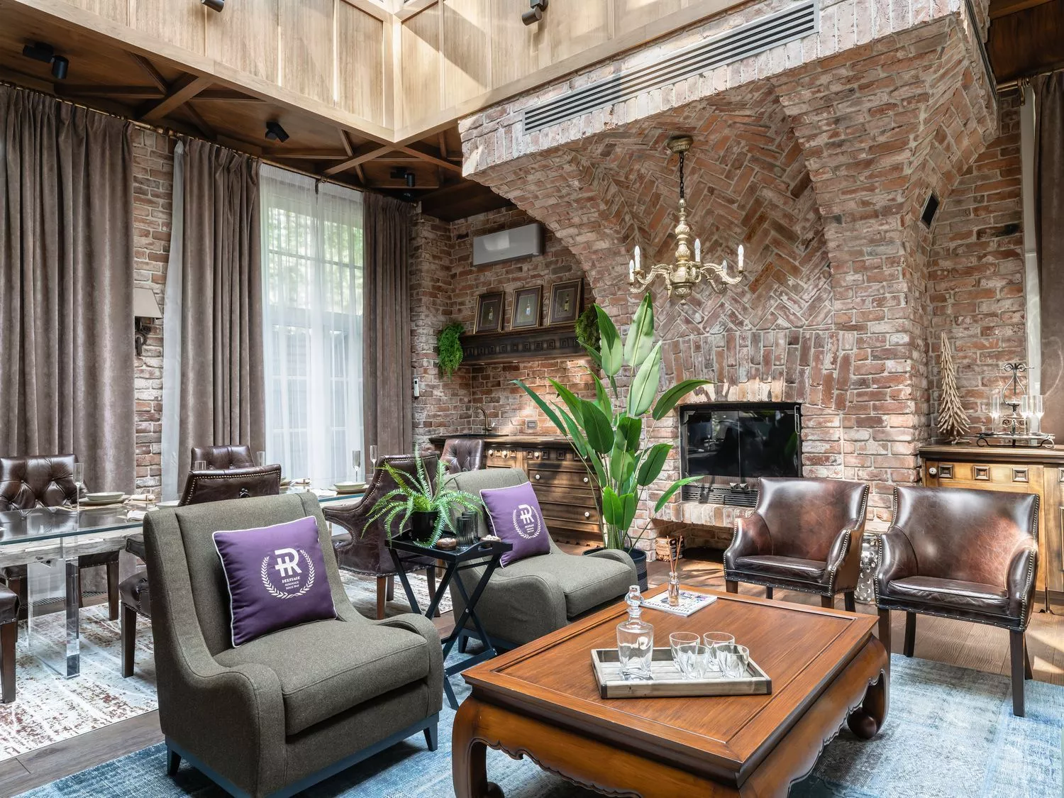 Особое внимание уделено ансамблю малых мебельных форм, которые добавляют интерьеру динамики и индивидуальности. В зонах у камина и в лаунж-пространствах дизайнер разместила кресла Whopper, Juliet и Ray, каждое из которых выполняет свою роль в сценарии отдыха. Обволакивающее кресло Whopper приглашает к долгому отдыху под световыми фонарями крыши, в то время как графичные модели Juliet и Ray создают изысканные акценты, подчеркивая архитектурную чистоту линий и сложность колористических решений.